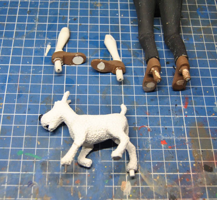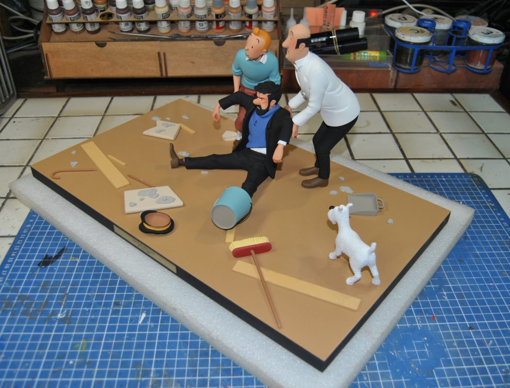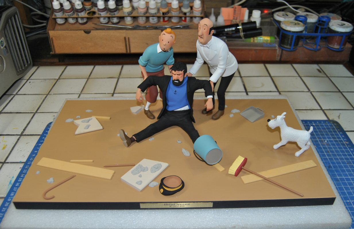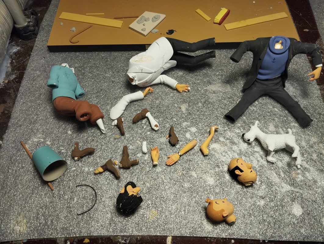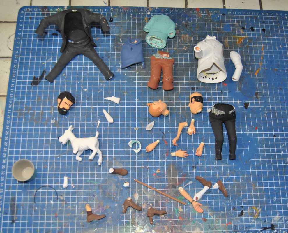 Il va falloir déconnecter ce puzzle, recoller quelques parties, mettre quelques broches, sculpter un doigt, un bout d’oreille, nettoyer tout ça, créer les teintes et repeindre l’ensemble des personnages au plus proche de son jus d’origine.