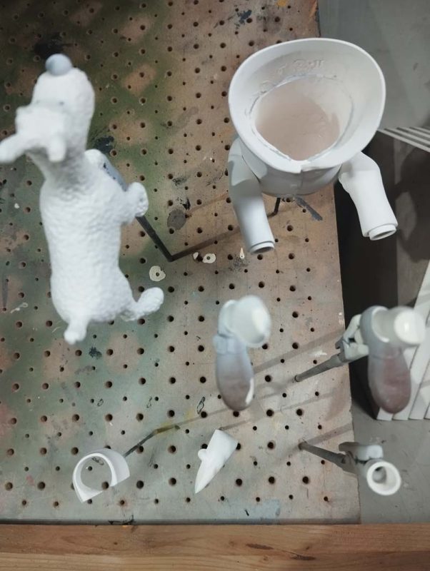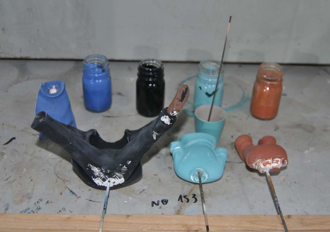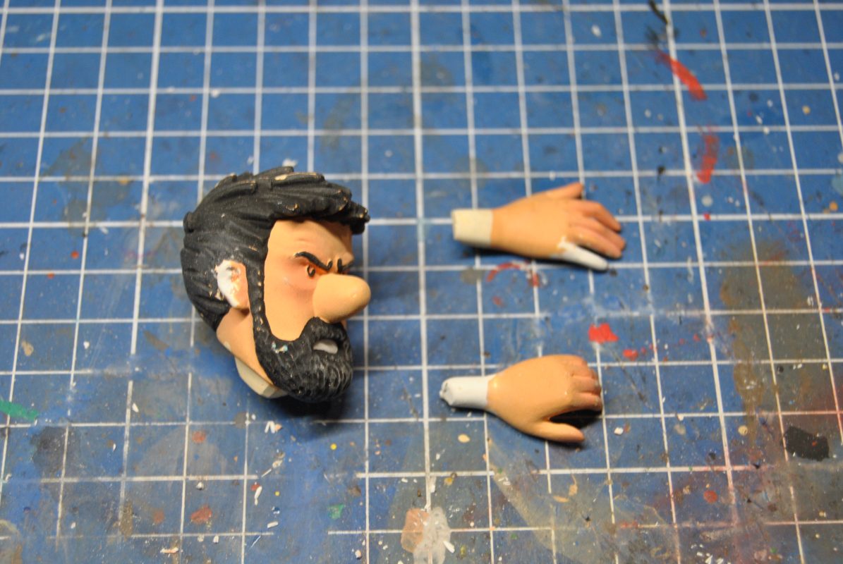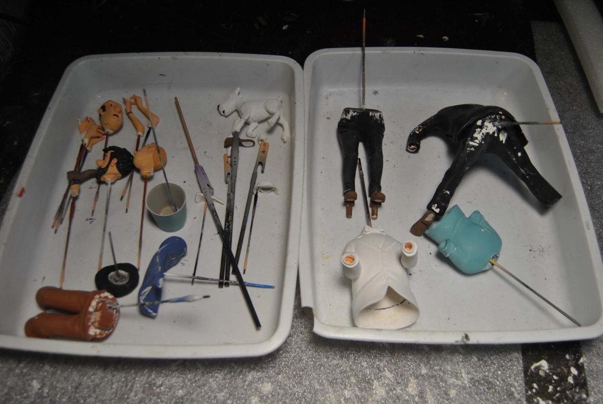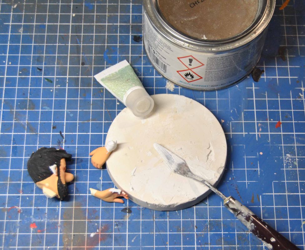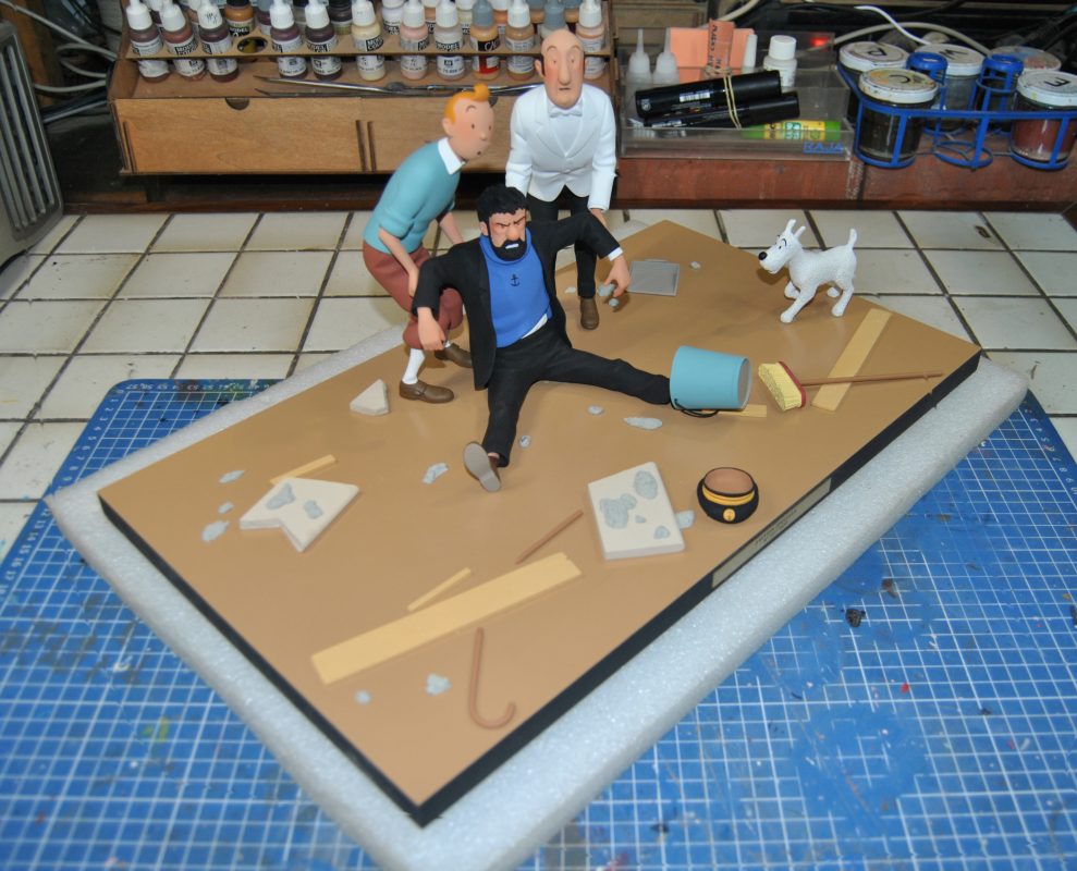 Il va falloir déconnecter ce puzzle, recoller quelques parties, mettre quelques broches, sculpter un doigt, un bout d’oreille, nettoyer tout ça, créer les teintes et repeindre l’ensemble des personnages au plus proche de son jus d’origine.