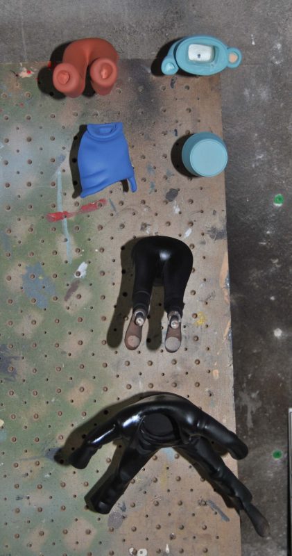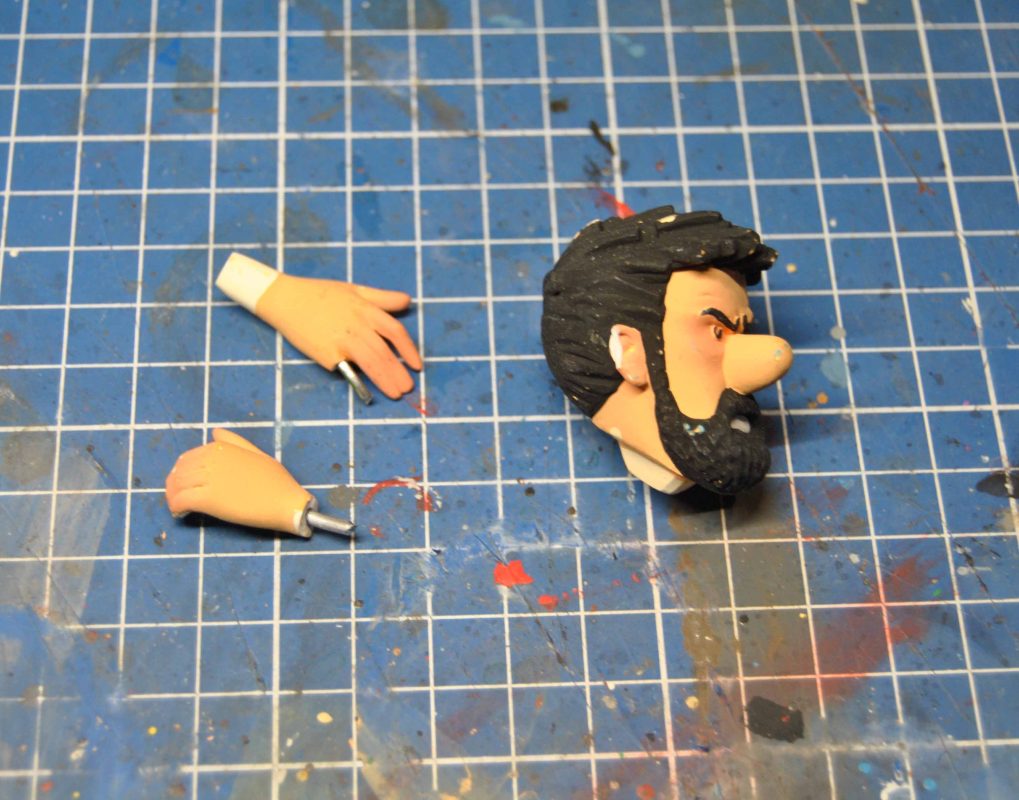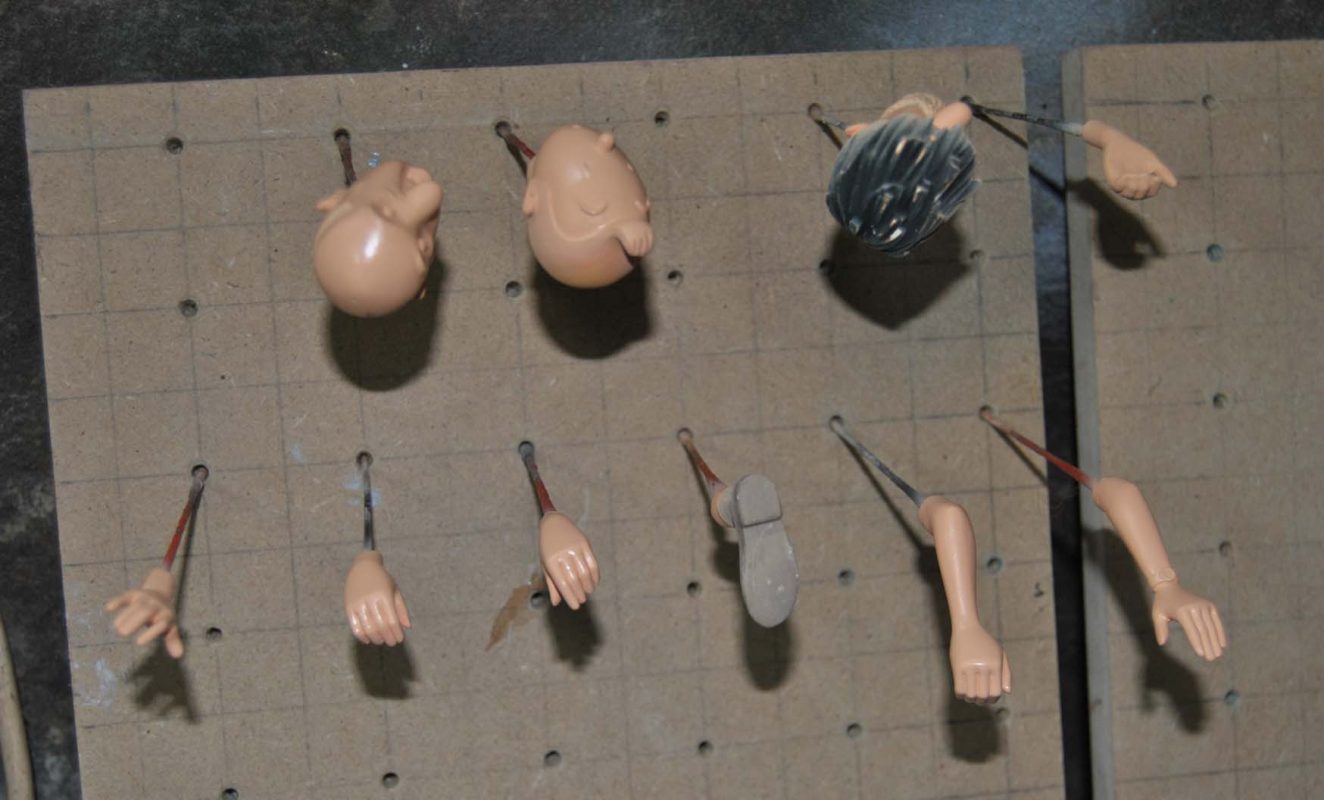Mise en place de broches, mastic et sculpture du doigt, de l’oreille et du téton d’assemblage